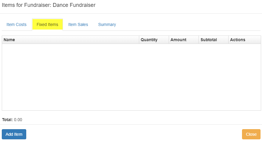 Upon creating a new fundraiser, you may want to add items to sell at the fundraiser. To do this you: