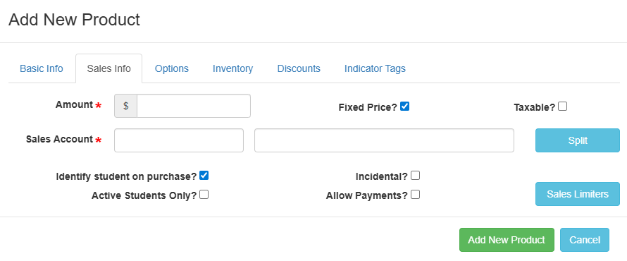 - Sales Account: Select the account where the funds should be deposited. To split funds between multiple accounts, click Split.