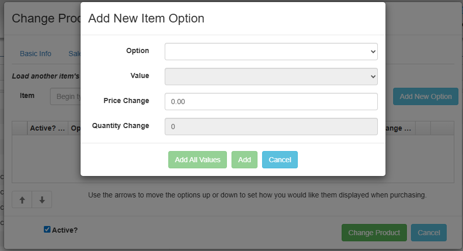 - Add a price change or quantity change, if needed. Example: To increase the price by $2.00, enter 2 in the Price Change field.