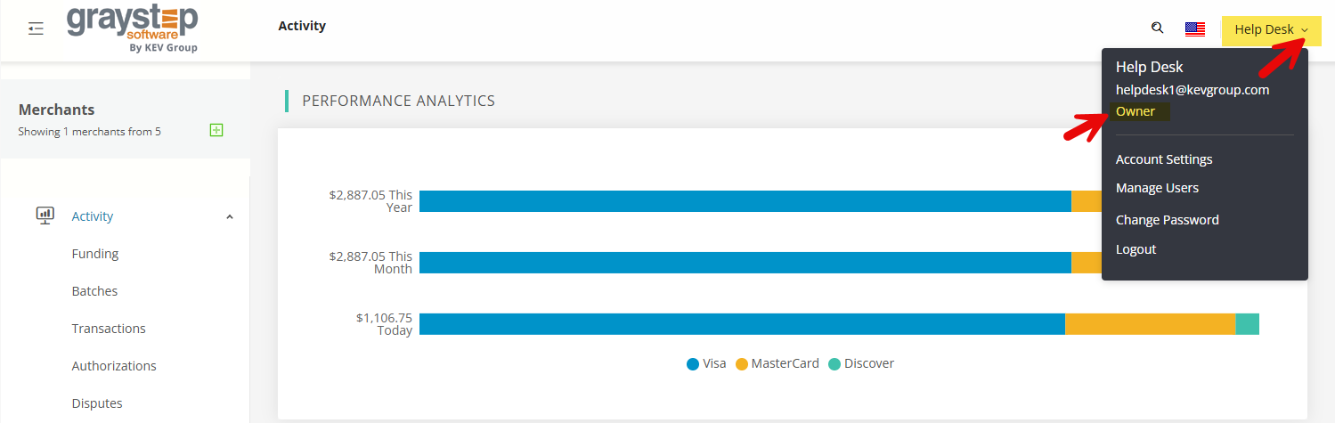 Under the Merchants tab, you’ll see a list of all the MIDs associated with your owner account. From here, you can choose which MID(s) you’d like to grant access to for the new user you’re adding.