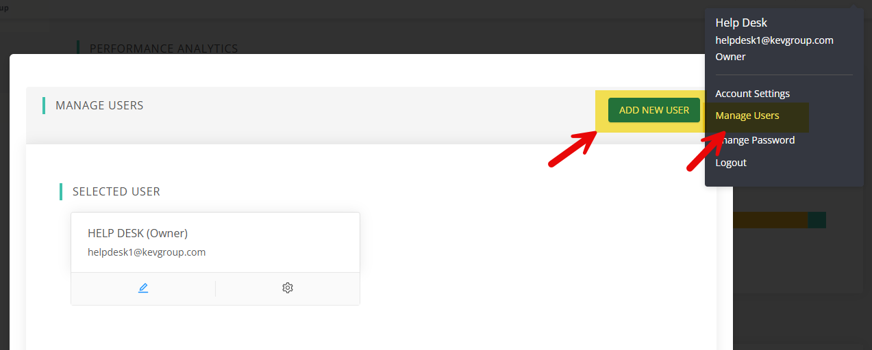 After you’ve confirmed that you are listed as the OWNER for your district, click on Manage Users. From there, you’ll be able to add new users or edit any existing users on your account.
