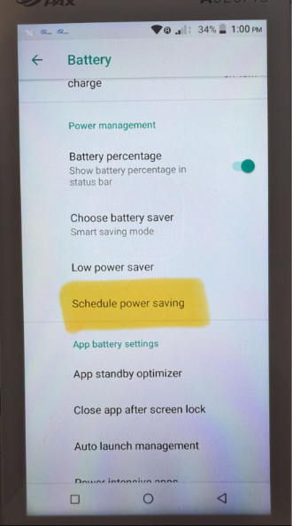 - Make sure “Schedule Power Saving” is turned off, then click back arrow (bottom right corner)